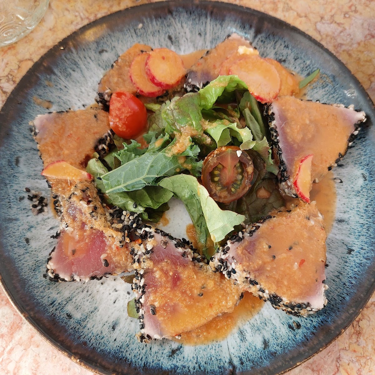 Seafood lovers often gravitate toward the Thunfisch dish, which highlights fresh flavors and clean preparation. It’s the kind of meal that feels light yet filling, making it ideal for a relaxed lunch or early dinner. Another standout from the menu is the Süsskartoffel-salat. The sweet potato salad brings a nice balance of textures and flavors, offering something a little different while still feeling comforting and homemade.